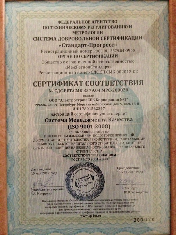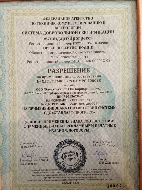 Наша компания - ООО "Электрострой СПб Корпорация 1" имеет все необходимые разрешения и допуски для произведения практически любых строительных и электромонтажных работ. Документацию можно посмотреть ниже.